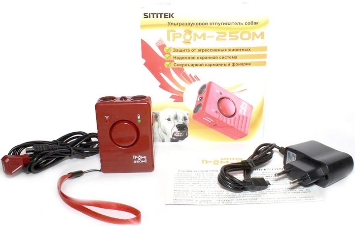 Нападение бездомных собак – не редкость в российских городах. Обезопасить себя от разъяренных животных можно, используя "Sititek Гром-250М". Это ультразвуковой аппарат, легко помещаемый в карман одежды или в сумку. Помимо ультразвука в устройстве предусмотрено две дополнительные опции – световые блики и звуковая сирена. Подобный принцип работы устройства позволяет его использовать как отпугиватель собак и иных животных, в качестве прибора, отпугивающего хулиганов, а также для освещения местности в темное время суток.